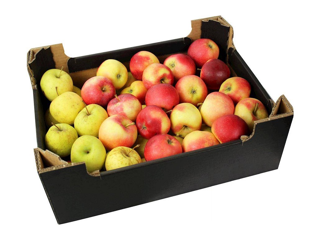Bedýnka obsahující česká místní jablka.